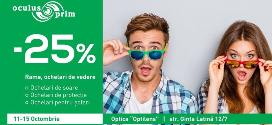 Pregătește-te să prinzi oferta spectaculoasă a toamnei, cu prețuri mai mici cu 25% la toată gama de ochelari, rame stilate și originale. Fie că este vorba de ochelari de soare, pentru corecția vederii sau pentru șoferi, ochii tăi au nevoie de protecție, inclusiv în sezonul rece.